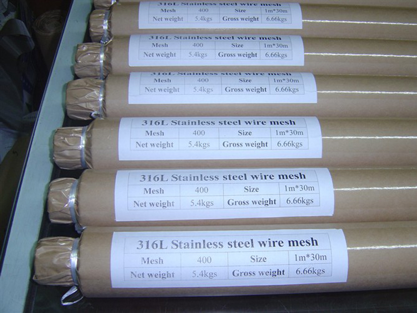 不銹鋼網(wǎng)寬度為0.914米、1米、1.22米、1.3米、1.4米、1.5米、1.6米、2米。主要材質為316L、316、304L、304、302、201、純鎳(N:99.5%)。高目數(shù)不銹鋼網(wǎng)主要特點表現(xiàn)為材質準確穩(wěn)定、網(wǎng)面平整整潔無污物、網(wǎng)孔均勻無變形、延伸良好耐磨損。高目數(shù)不銹鋼網(wǎng)包裝要求嚴格,首先把不銹鋼網(wǎng)打成卷狀→不銹鋼卷包好牛皮紙→牛皮紙外包好塑料膜→塑料膜外包好蛇皮袋子→硬紙筒→木箱。順序包裝防止產(chǎn)品在運輸過程當中受潮受撞擊。